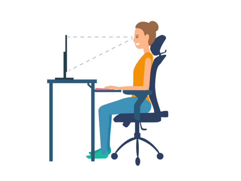 Your shoulders should feel relaxed, and your feet should be flat on the floor or resting on a footstool for support. Make sure your keyboard is flat, never angled so it's higher at the back. Your keyboard should be situated so that your elbows are bent at 90-degree angles and your wrists are flat as you place your fingers on the keys. If your chair or armrests are too low or high, ask someone to help you adjust your work area. One of the most important things to remember about your posture and your position as you're typing is that your body should feel neutral. You shouldn't have to work or strain to keep your body parts in the right positions while you're at the computer. Straining can even cause injuries over time.