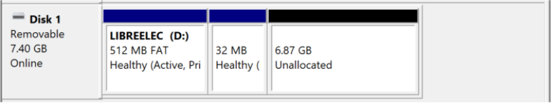Once you have selected the image file and device, click on Write. The program will write the image onto the device. Once the operation has been performed, you can check to make sure it was successful by going to the computer management menu in Windows 10. The newly formatted device should look like this: