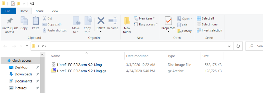 Perform the downloads of the three items above, the Win32Disk imager, The latest version of LibreELEC, and your chosen file compression software. Follow the installation options where necessary. Once downloaded, open up 7Zip and extract the compressed LibreELEC file. Once done you will have a libreELEC .img file, that looks something like this: