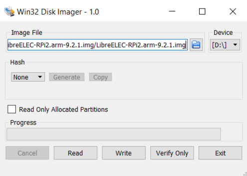 With the Win32Disk imager open, select your desired image file, which will be the LibreELEC file in this case. You will also need to choose the device that you wish to format with the .img file. Find out which device name your MicroSD card has, which you can do through the This PC menu on Windows 10. Then select the correct device. Do not select the wrong device as formatting willwipe any information and replace it with the LibreELEC file.