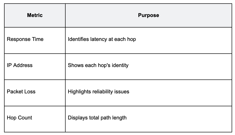 Here’s a simple breakdown of what you’ll see in the traceroute output: